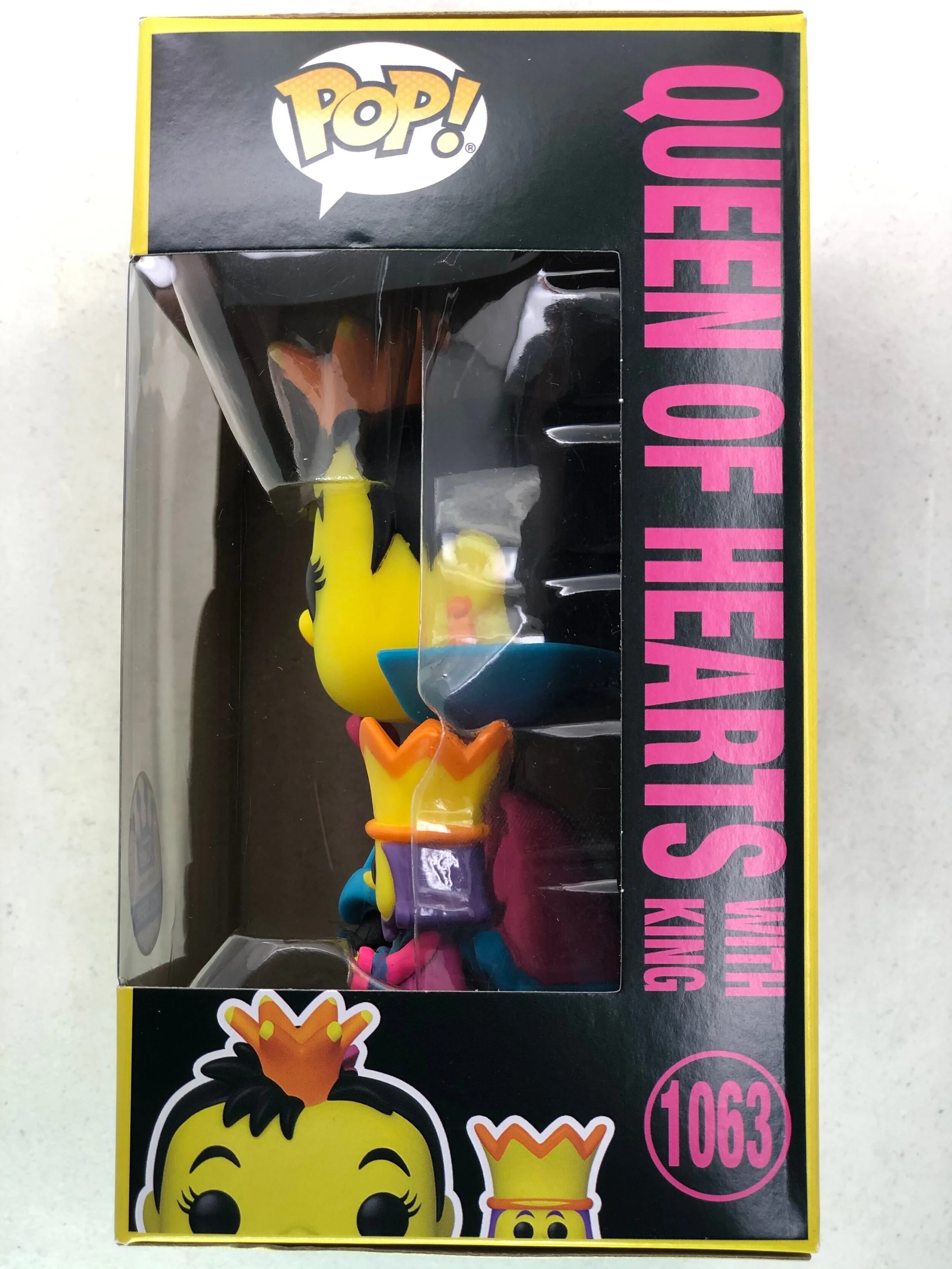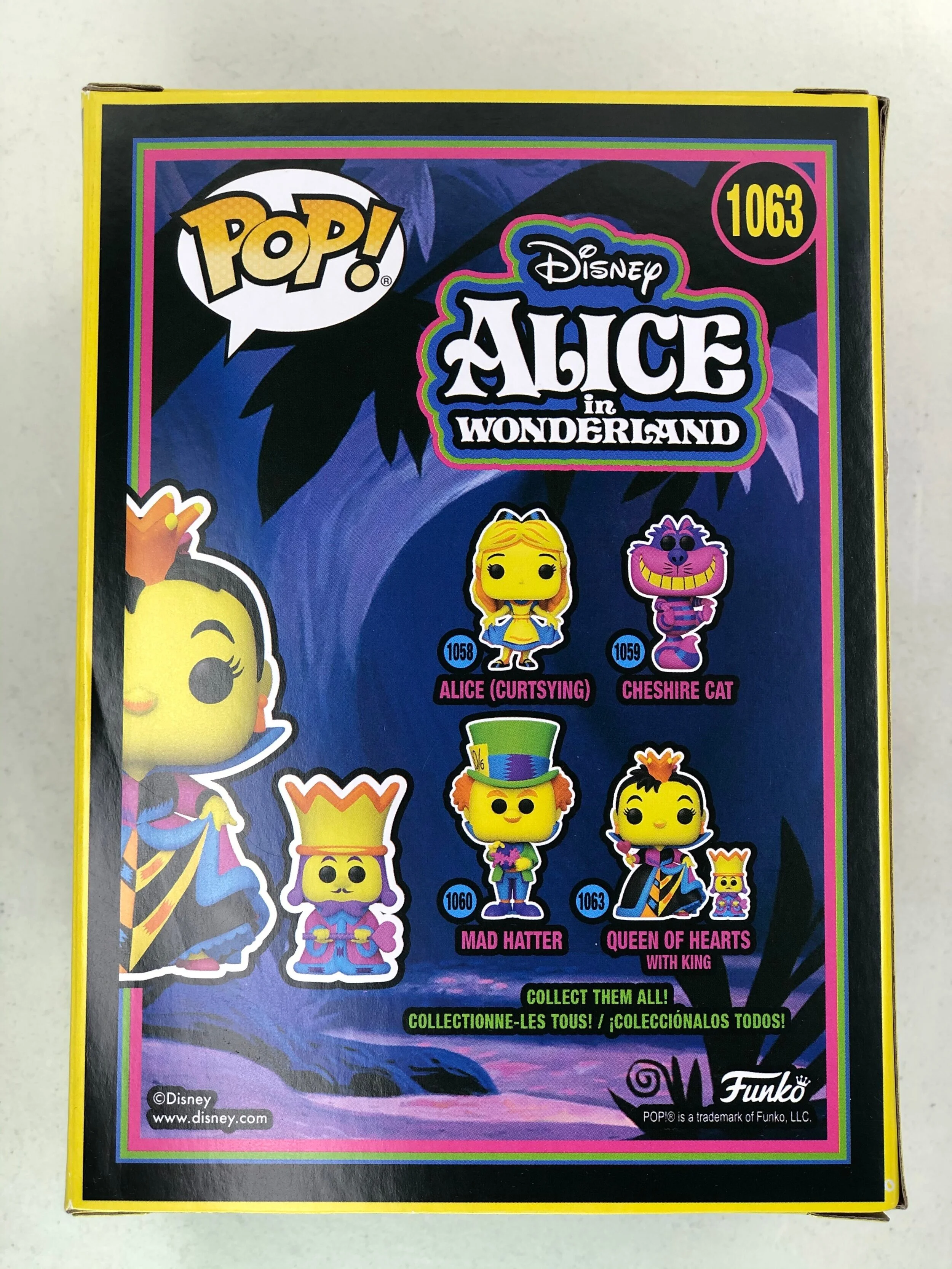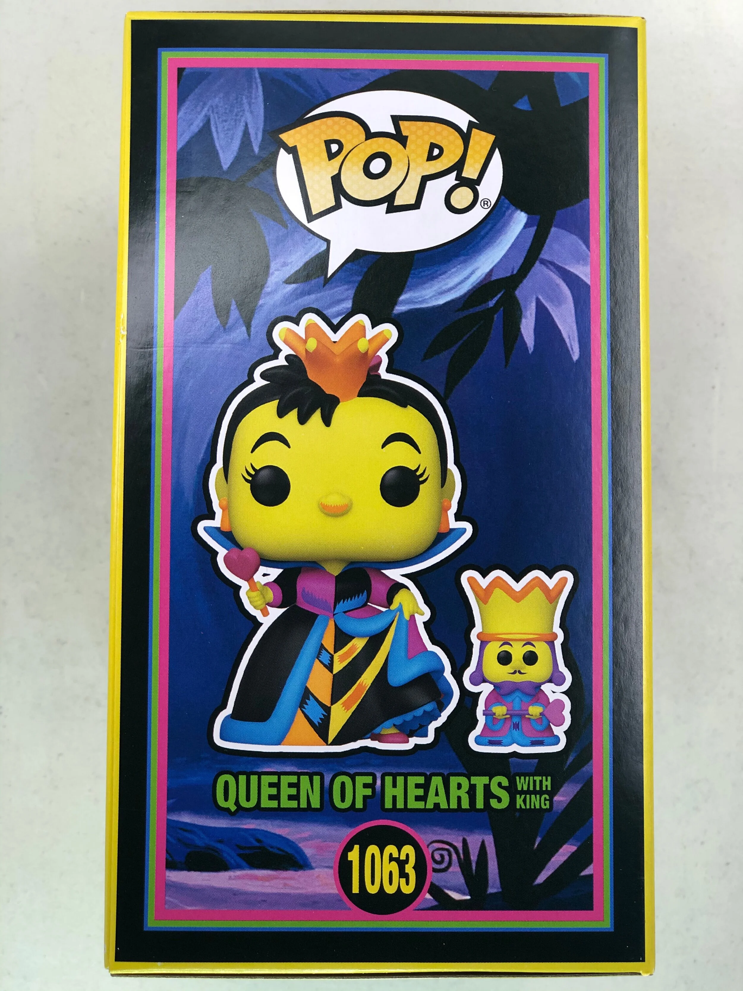 From Disney’s 1951 animated musical fantasy film, Alice in Wonderland, comes a Funko Pop Funko Shop Exclusive of Queen of Hearts (w/ King | Black Light). This Funko Pop! Vinyl Figure measures approximately 4-inches tall and comes packaged in a window display box. To take a closer look, check out the 360 feature below. Now Available in limited quantities while supples last!