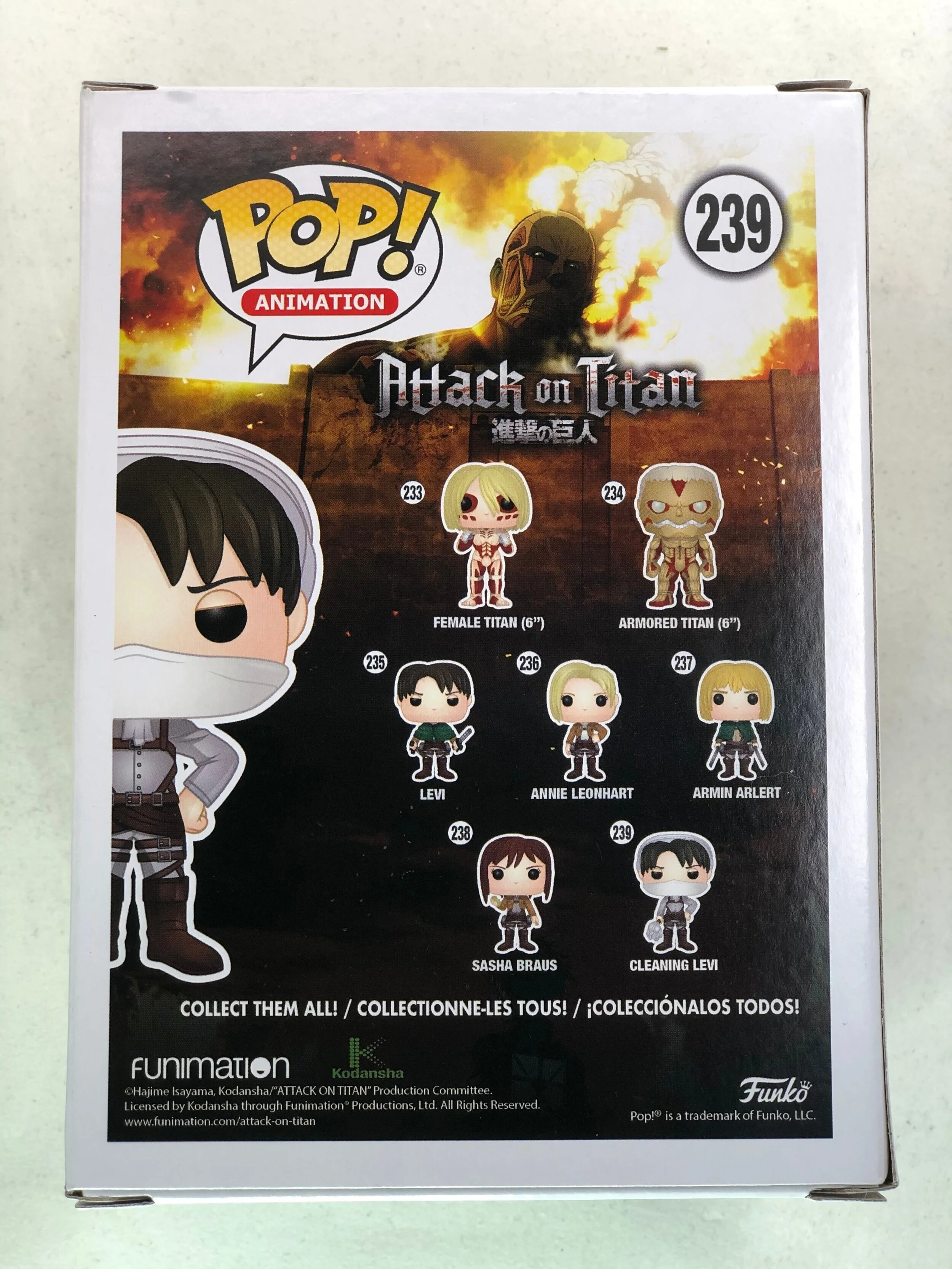 From the famous Japanese manga series, Attack on Titan, comes a Funko Pop Hot Topic Exclusive of the unforgetable tidy character, Cleaning Levi. To take a closer look, check out the 360 feature below! Now available in limited quantities while supples last.