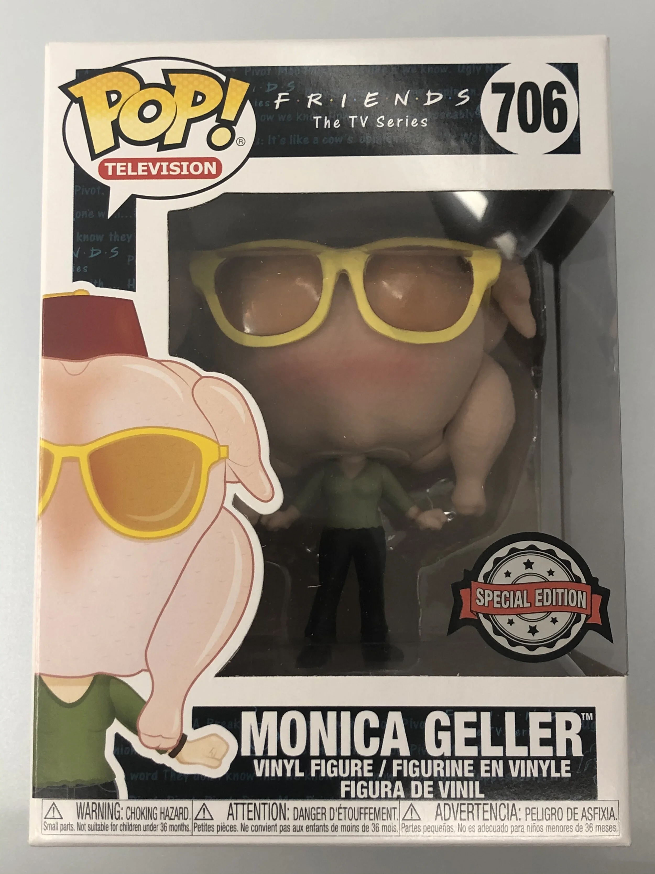 From NBC’s American television sitcom, FRIENDS, comes a hilarious/memorable Funko Pop Special Edition Exclusive of Monica Geller [w/ Turkey Head]. This Funko Pop! Vinyl Figure measures approximately 4-inches tall and comes packaged in a window display box. To take a closer look, check out the 360 feature below. Now available in limited quantities while supplies last!